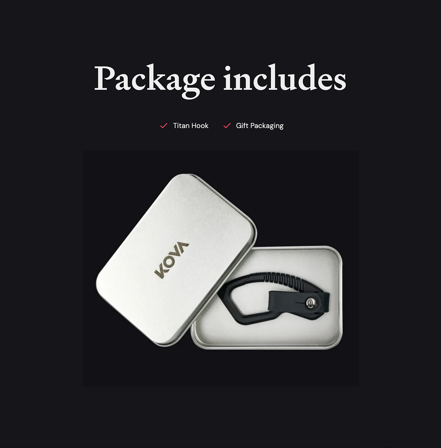 KOVA Blade’s Titan Hook is a compact, multifunctional carabiner crafted from premium titanium—combining minimalist design with rugged utility. Whether you're headed into the wild or navigating daily tasks, the Titan Hook delivers exceptional performance in a sleek, lightweight form. At just 2.5 inches long and weighing 0.6 ounces, it easily attaches to your keys, belt loop, or bag via its built-in carabiner clip. The matte black finish adds a refined, tactical touch, while the integrated bottle opener and sharp cutting edge ensure you're ready for quick, everyday needs. The included leather strap with a snap button and lanyard hole offer flexible and secure carry options. This durable tool is a reliable companion for everyday carry (EDC) enthusiasts and adventurers alike, combining form, function, and refined utility.